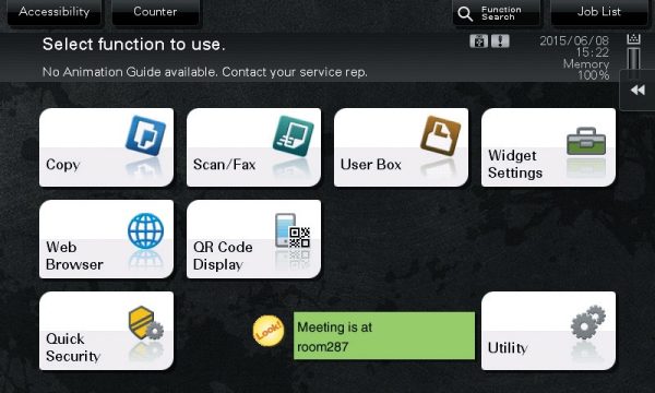 The bizhub 367/287 provides the perfect balance of usability and performance. With mobile connectivity support (NFC, AirPrint, Mopria) and “sticky note” widgets on the operation panel, it keeps your office communication fluid while maintaining high output quality.